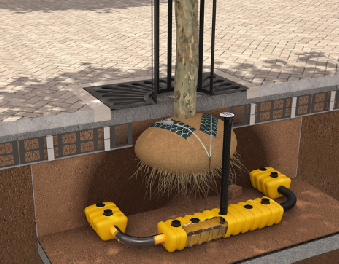 Linked irrigation systems prevent newly planted trees from failing due to under watering.